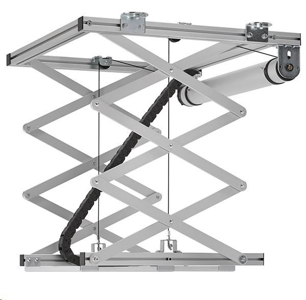 Výtah na projektor PPL2100 je perfektní řešení pro estetickou integraci větších a těžkých projektorů do stropu. Nejen že je projektor pěkně schován, ale je i zároveň lépe chráněn proti krádeži. Výtah pracuje velmi tiše a nabízí dvě nastavitelné pozice - výchozí a promítací.Výtah byl vyvinut pro instalaci do stropních podhledů, které poskytují velmi málo místa. V rámci podhledu je požadováno pouze 15,5 cm minimální výšky k instalaci výtahu a projektoru. Konstrukce umožňuje pokles až o 81,5 cm. Maximální nosnost výtahu je 30 kg.