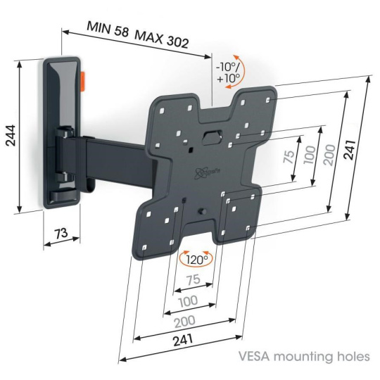 Bezpečnost, design a pohodlí při sledování TV jdou ruku v ruce s držákem TVM 3223. Držák je speciálně navržen pro intenzivní používání. Je velmi robustní a zaručuje optimální zážitek ze sledování TV. Můžete jej otáčet až o 120° (záleží na šířce TV) a naklápět o 20° (10° nahoru a dolů). TVM 3223 je vhodný pro televizory s úhlopříčkou od 19 do 43 palců a hmotností do 15 kg.