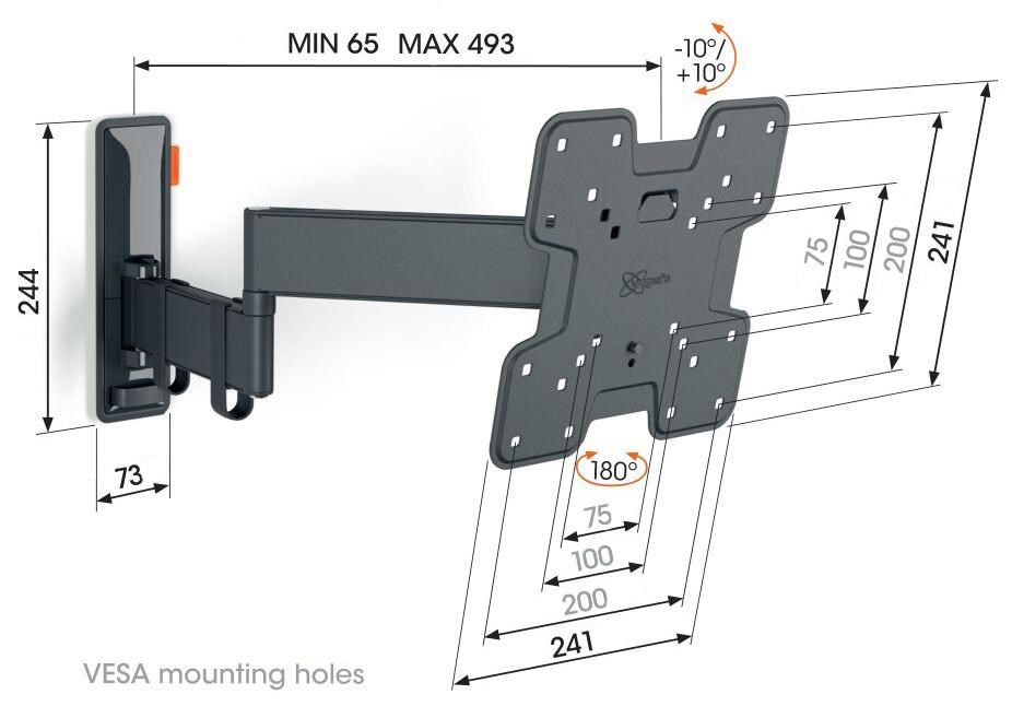 - Otočte televizor až o 180° díky 49 cm dlouhým ramenům