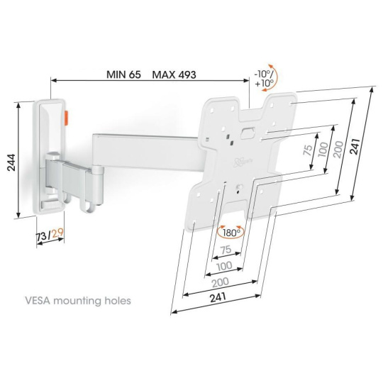 - Otočte televizor až o 180° díky 49 cm dlouhým ramenům