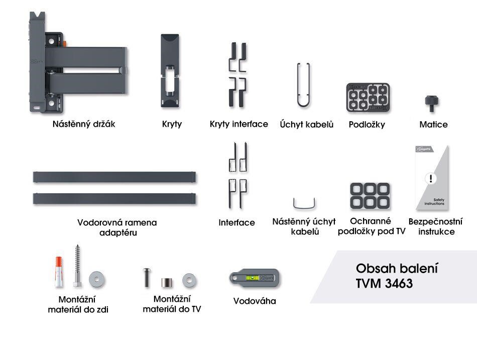 K instalaci TVM 3463 nemusíte být profesionál. Součástí balení je vrtací šablona, šrouby, hmoždinky Fischer® DuoPower, stahovací pásky na kabely a vodováha. V aplikaci DrillRight™ AR App si můžete díky rozšířené realitě snadno prohlédnout, jak bude vypadat váš televizor v konkrétním interiéru a vyznačit na stěně přesnou polohu pro první vrtací otvor. Poté přiložíte vrtací šablonu a vyznačíte si zbývající otvory pro montáž držáku.