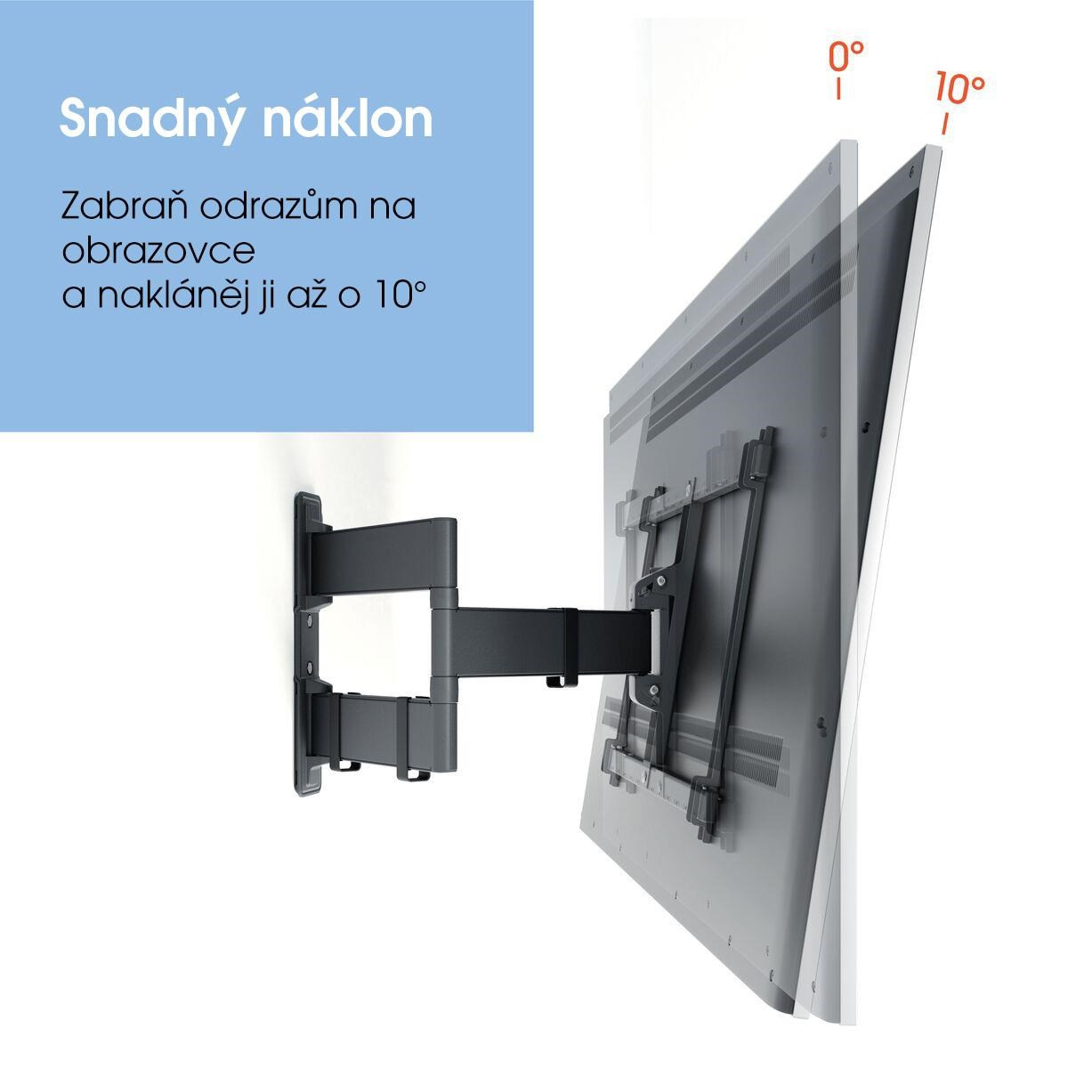 • Snadné naklápění - vyhněte se odrazům a skloňte TV až do úhlu 10°, zajištění a uvolnění pomocí TiltAnchor™