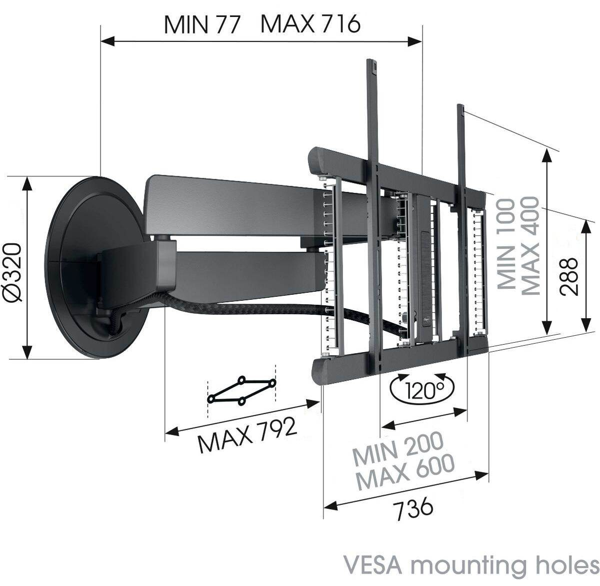 Nástěnný držák televizoru SIGNATURE MotionMount je absolutní špičkou mezi modely společnosti Vogel's. Elektricky poháněný držák se automaticky natočí směrem k vám, když zapnete televizor. Jeho propracovaný design se dokonale hodí k velkým a velmi tenkým televizorům, jako jsou televizory OLED a QLED. Držák můžete ovládat hlasem, aplikací nebo dálkovým ovladačem. Držák je vhodný pro obrazovky o velikosti 40 až 77 palců a s maximální hmotností 35 kg. Televizor můžete natočit až o 120° pro maximální požitek ze sledování.