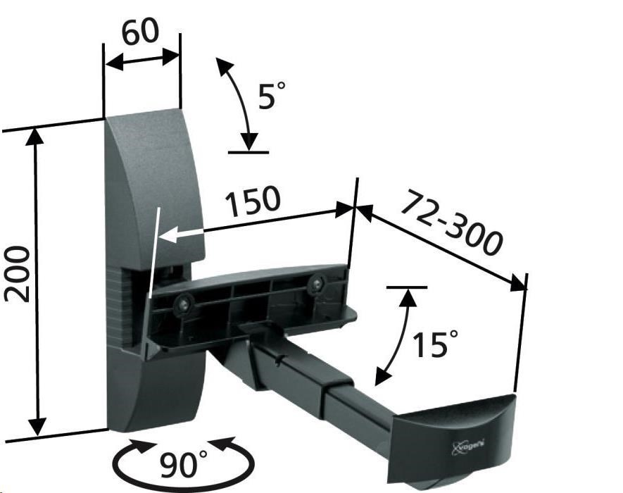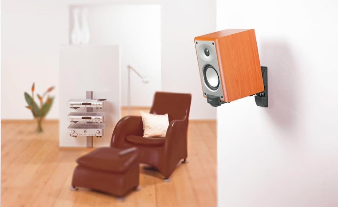 Nástěnný držák bez nutnosti vrtání do skříně reprosoustavy, ta se sevře čelisťovým mechanismem. Ideální pro regálové reprosoustavy střední velikosti