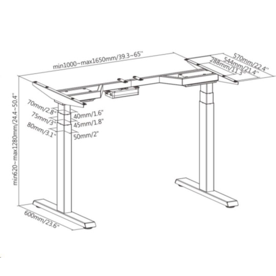 Výškově stavitelný stůl Brateck M08-23DE 2 motory rozsah 620-1280 mm nosnost 100 kg