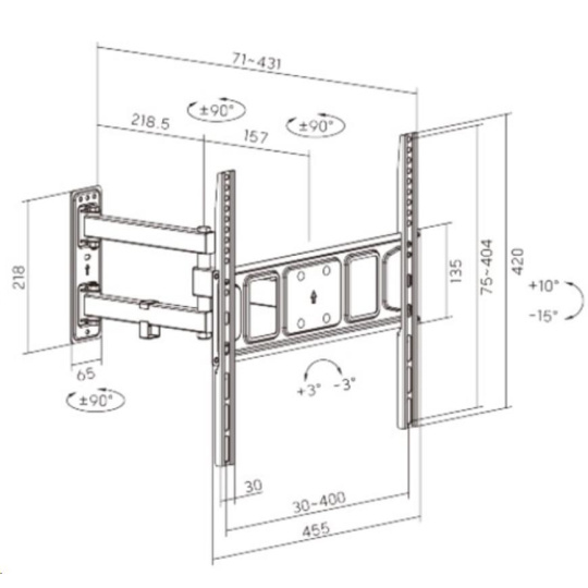 • Výsuvná konstrukce s možností stranového natočení v rozsahu +90°~-90°