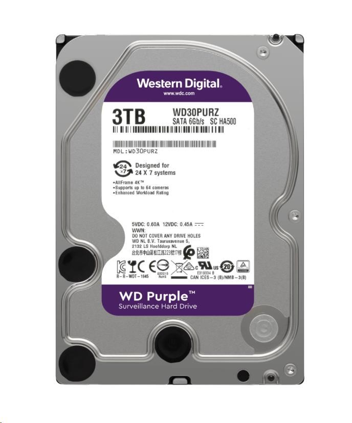 WD PURPLE WD34PURZ 3TB, SATA III 3.5", 128MB, 180MB/s, Low Noise, CMR