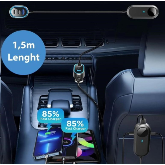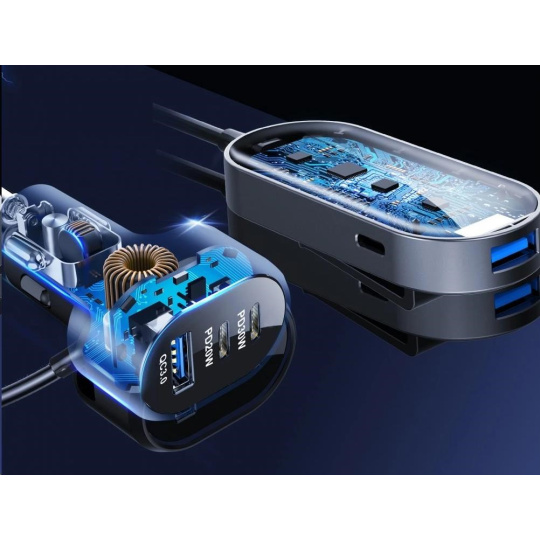 WG - Autonabíječka rozbočovač / 100W / 6 USB ports / 2x USB-A + 4x USB-C / s prodloužením