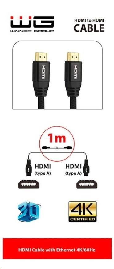 WG Datový kabel HDMI to HDMI / 1m / nylon braided / black