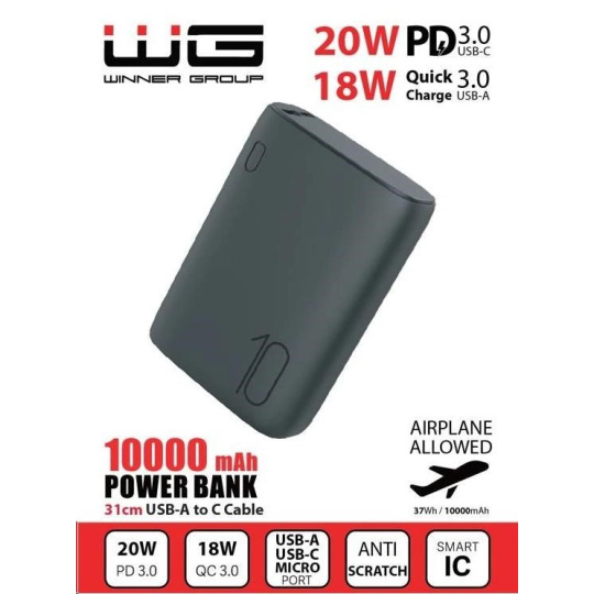 WG - Power Bank 10000 mAh, QC 3.0 a PD output+input, ultra malá, černá