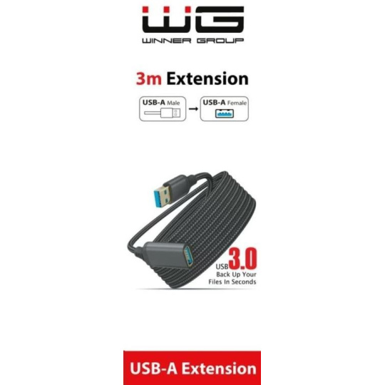 WG - Prodlužovací kabel USB-A (male) to USB-A (female) / 3m / nylon braided / black