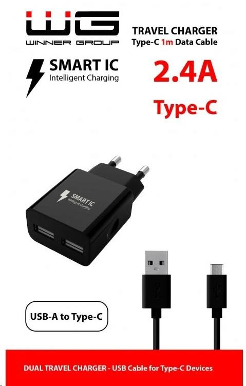 WG - Síťová nabíječka 2x USB-A 2,4A , Smart IC + kabel USB-A na Type-C, black
