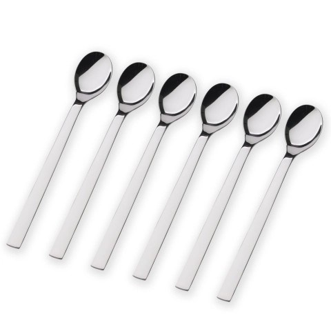 Elegantní řešení pro vysoké sklenice. Lžičky na latte macchiato z kolekce Nuova jsou navrženy s extra dlouhou rukojetí, která hravě dosáhne na dno vysokých sklenic. Jsou ideálním společníkem nejen pro milovníky vrstvených kávových specialit, ale také pro podávání pohárů, koktejlů nebo jogurtů ve vysokých nádobách.