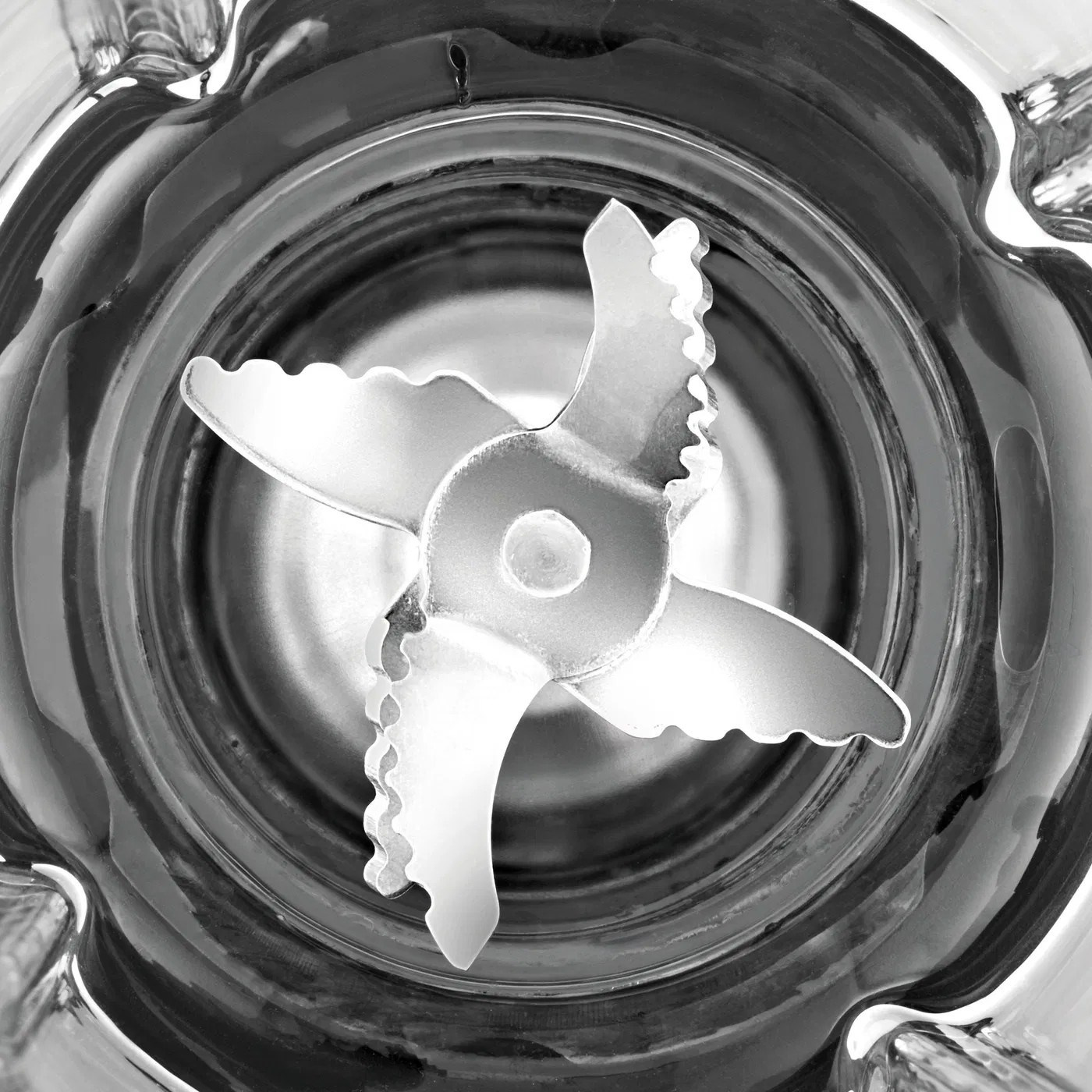 • Bezpečnostní funkce: Mixér se spustí pouze tehdy, je-li skleněná nádoba správně nasazena. Protiskluzové nožičky zajišťují stabilitu při maximálních otáčkách.