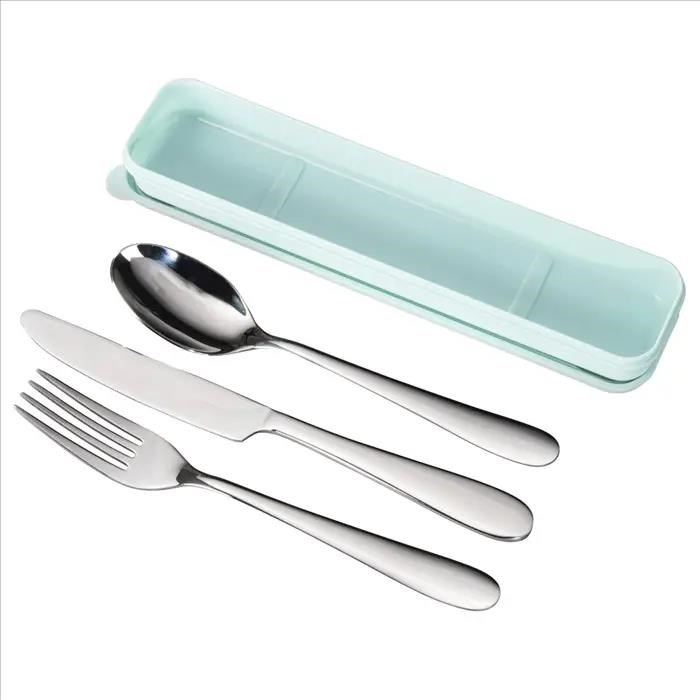 - polévková lžíce, vidlička, nožík v krabičce pro uložení/přenášení - vyrobeno z ušlechtilé oceli, příbor vydrží dlouhá léta, nemusíte používat jednorázový příbor - do práce, školy i na cesty - balení bez obsahu plastů, přátelské k životnímu prostředí - příbor je vhodný do myčky na nádobí - krabička NENÍ vhodná do myčky na nádobí - rozměry: vidlička - 20,2 cm, nožík - 23 cm, lžíce - 19,8 cm - rozměry krabičky: 5,1 x 23,9 x 2,8 cm - materiál: nerezavějící ocel, polypropylen - barva: stříbrná/pastelově modrá Obsah balení: - 1 polévková lžíce - 1 vidlička - 1 nožík - 1 krabička s víčkem.