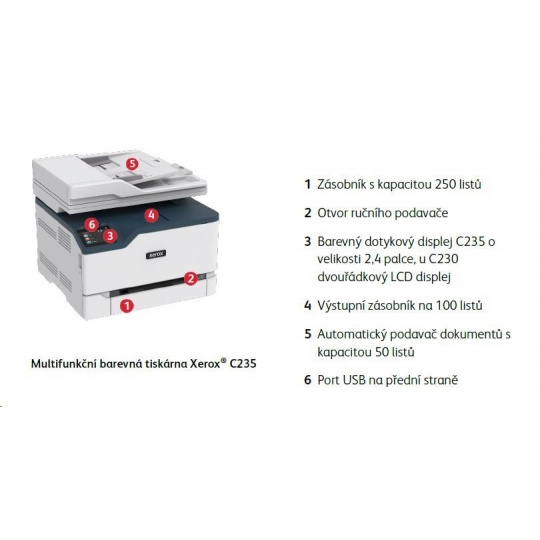 Xerox C235V_DNI, barevná laser. multifunkce, A4, 22ppm, duplex, ADF, WiFi/USB/Ethernet, 512 MB RAM, Apple AirPrint
