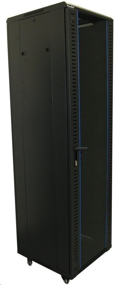 XtendLan 19" stojanový rozvaděč 42U 600x600, nosnost 800kg, skleněné dveře, plná záda, kolečka,černý