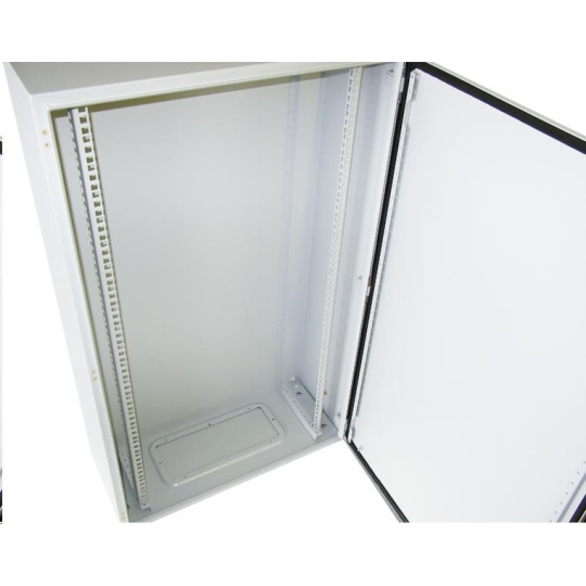 Venkovní nástěnný rozvaděč vyrobený z válcované oceli o tloušťce 1,5 mm.Třívrstvá povrchová úprava. Provedení: dveře - plné, otevíratelné o 110°, zaměnitelný směr otevírání, těsnění z pěnového polyuretanu zádní kryt - plný boční kryt - plný horní kryt - plný