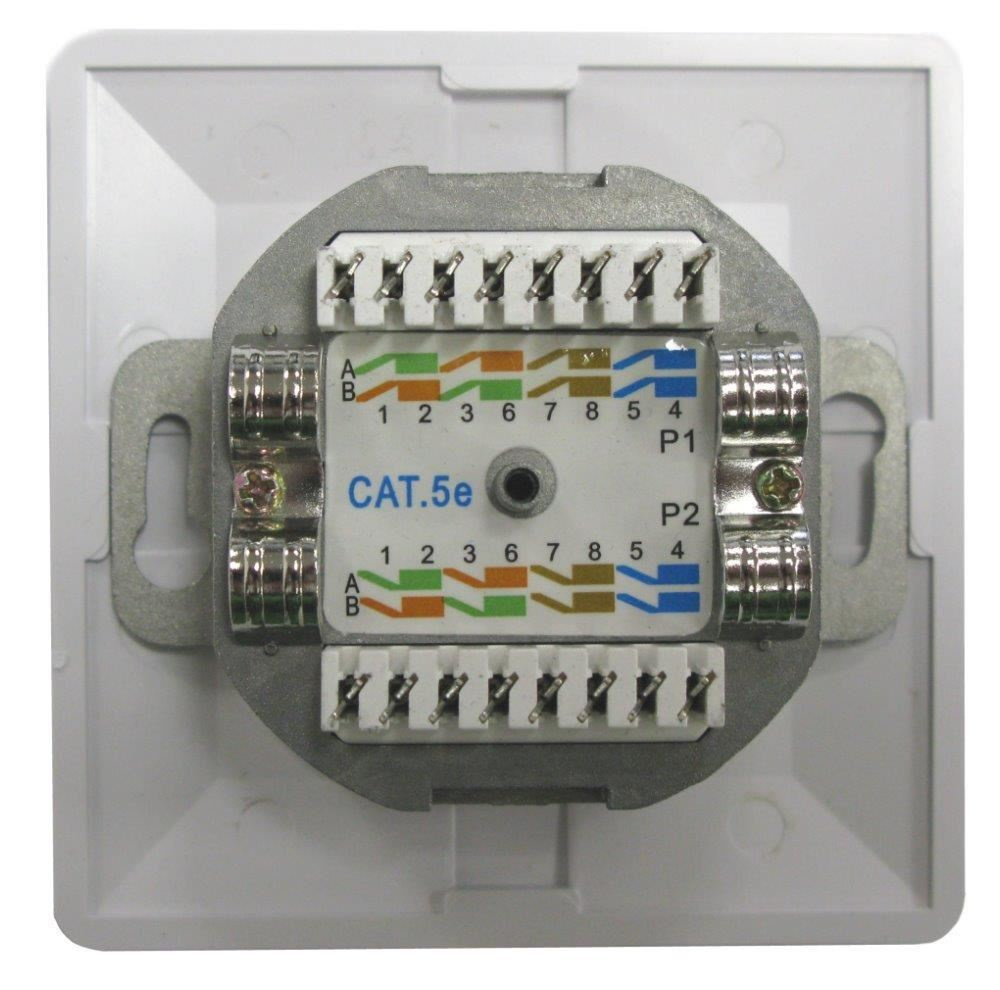 Zásuvka STP 2x RJ45 Cat5E, duální svorkovnice, pod omítku