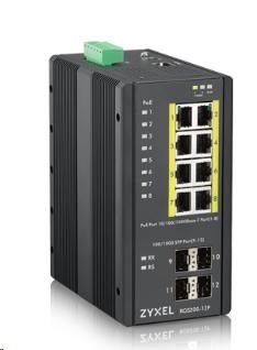 Zyxel RGS200-12P 12-port Gigabit WebManaged PoE switch, 8x GbE + 4x SFP, PoE budget 240W, DIN rail/Wall mount, IP30