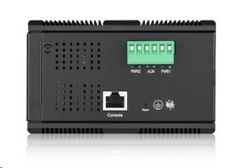 12-port Gigabit WebManaged switch: 8x GbE + 4x SFP, PoE (802.3at, 30W), Power budget 240W, DIN rail/Wall mount, IP30 napájení pouze pomocí průmyslového zdroje.